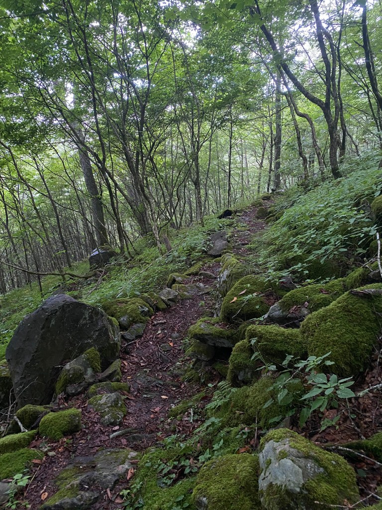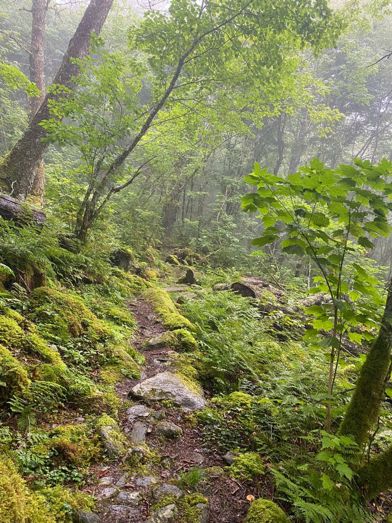 The first five miles were very challenging. I had to rediscover my hiking rhythm, plus the terrain was tricky, with wet rocks and a slanted trail surface.