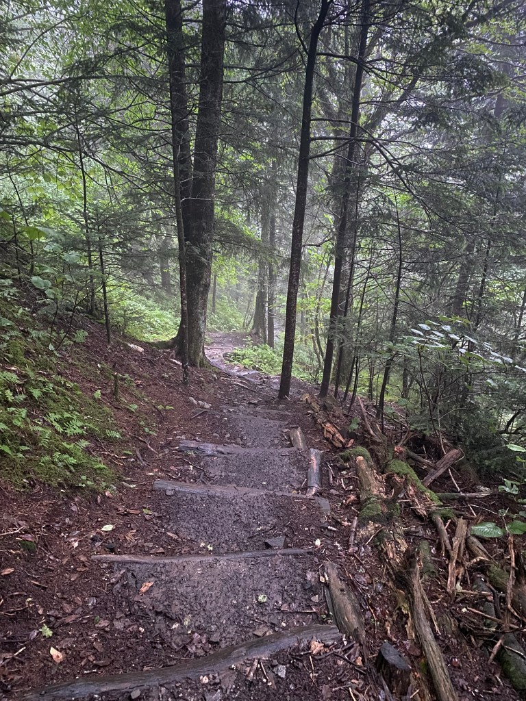 I navigated all the stairs, rocks, and roots very, very slowly and carefully.