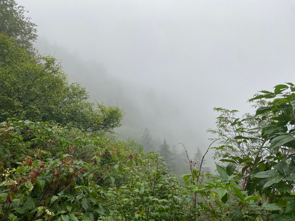 The Waterrock Knob parking area was enshrouded in mist when the husband-shuttle dropped me off at 7:30am.