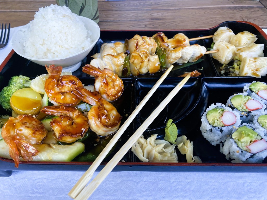 Rick and I ordered the exact same bento box. Hiking 12 miles together must sync up your tastebuds!