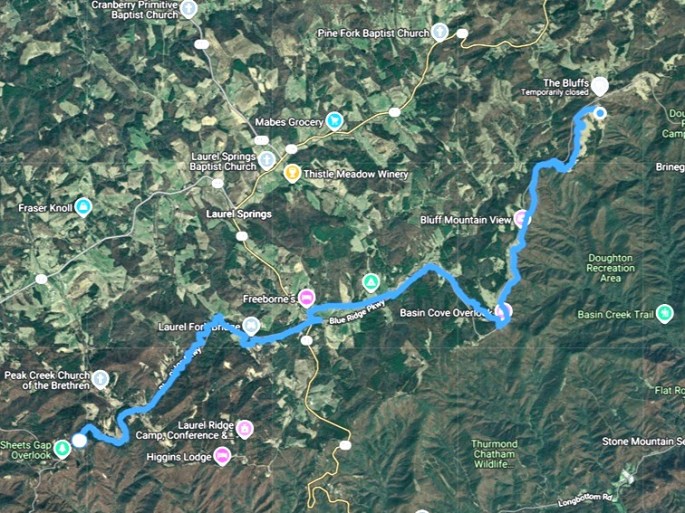 The route intersects with the Blue Ridge Parkway in several locations, which gives this old lady solo hiker a level of reassurance that help could reach me quickly if I ever needed it.
