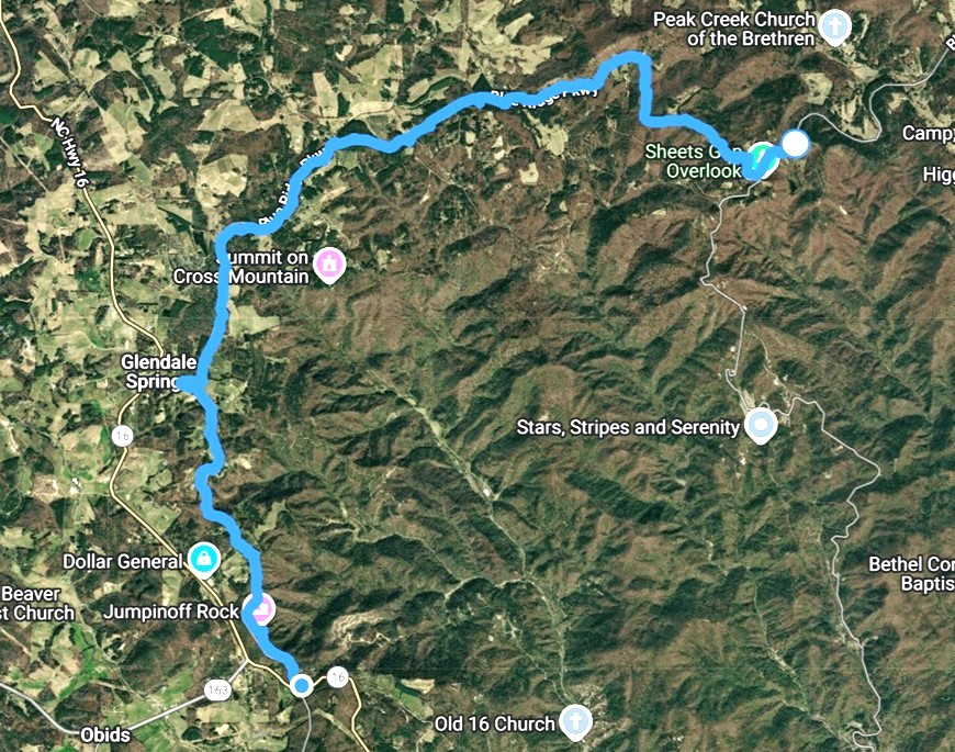 The route included some short stretches on the Blue Ridge Parkway and several crossings.