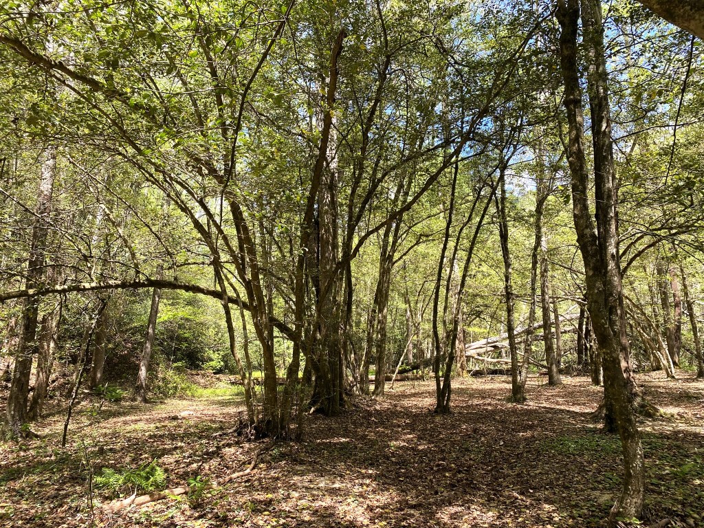 It was always a joy to traverse a nice, level camping area, like this one in the shade of mature holly trees.