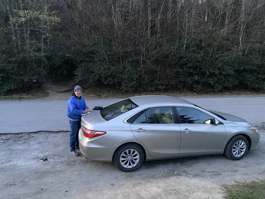 The Beacon Heights parking area on the Blue Ridge Parkway was closed, but finding a place to pull over on the adjacent road was no problem at 6:30 in the morning.