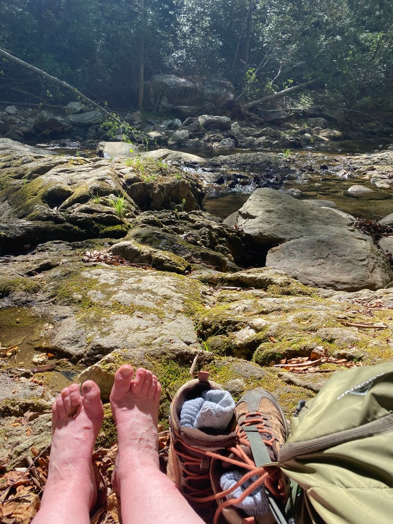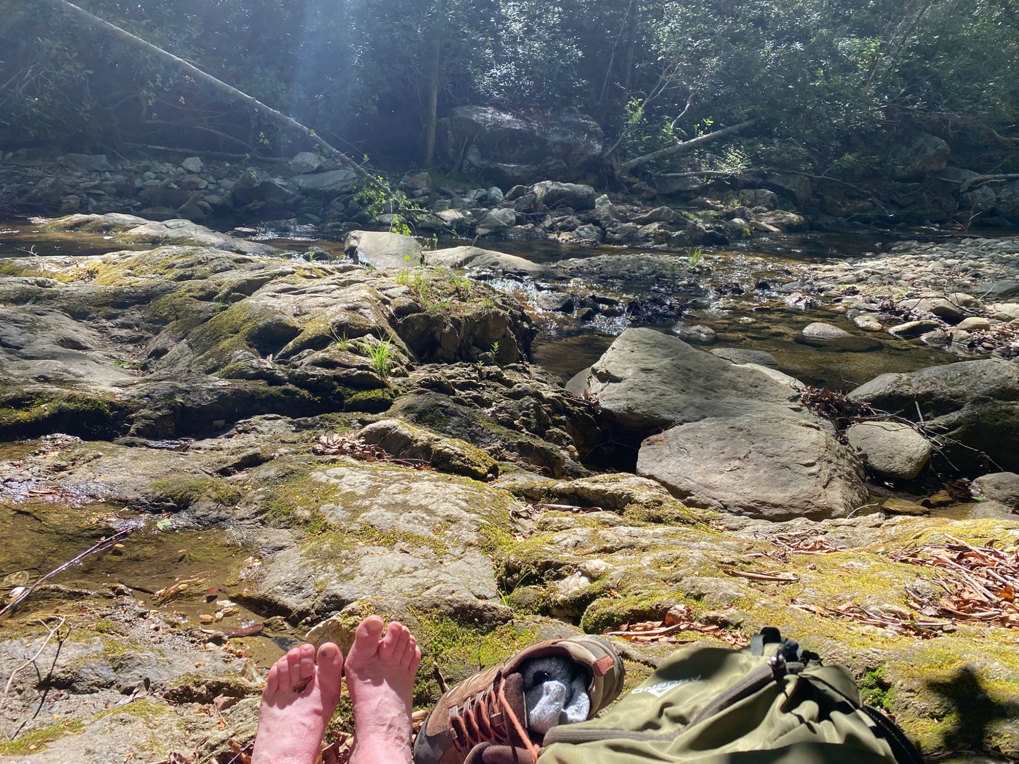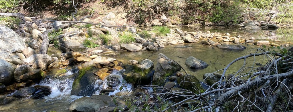In the end, I waded only one creek today, successfully rock-hopping the other four.