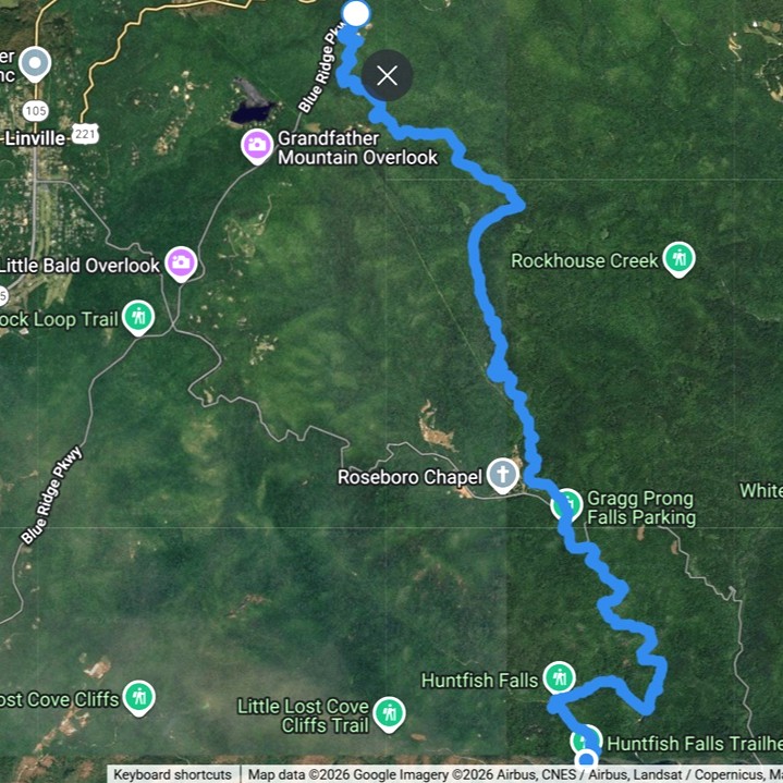 Beacon Heights to Hunt Fish Falls TH on Pineola Road, westbound