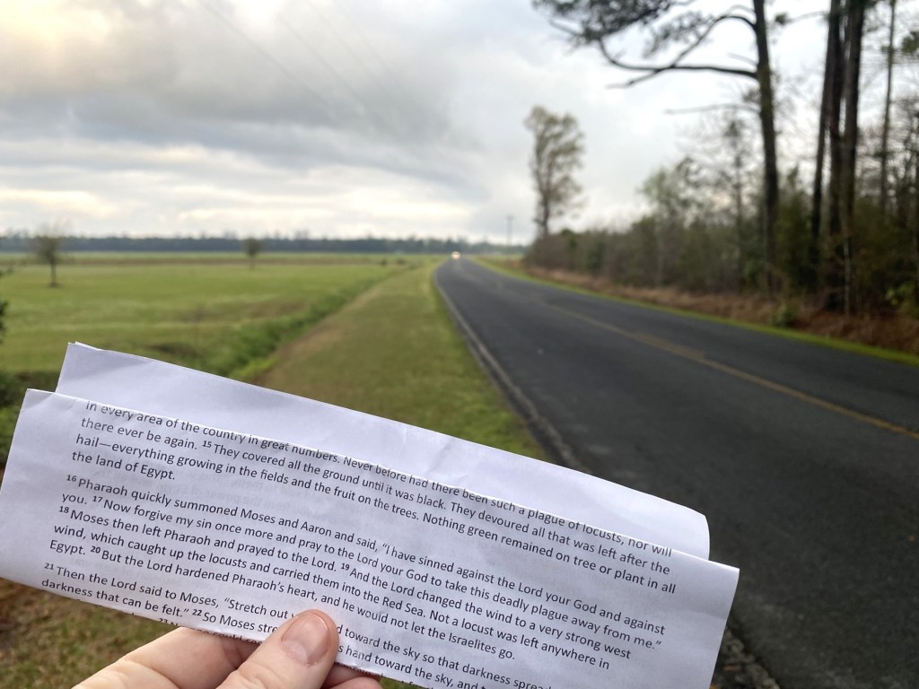 Traffic was light, so I could read my Bible verses throughout the hike. It was a great way to help the miles go by.