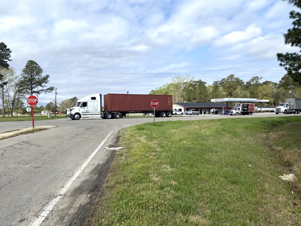 After a long 10-mile stretch on the same road, I took a break at the intersection with US 421. I didn’t need any drinks or snacks at the convenience store, but I sat in the shade and took off my boots for a few minutes.