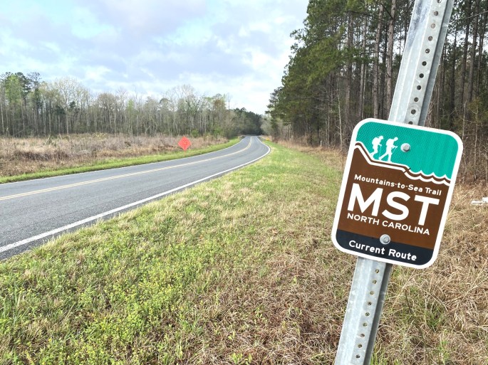 After a long 10-mile stretch on the same road, I took a break at the intersection with US 421. I didn’t need any drinks or snacks at the convenience store, but I sat in the shade and took off my boots for a few minutes.