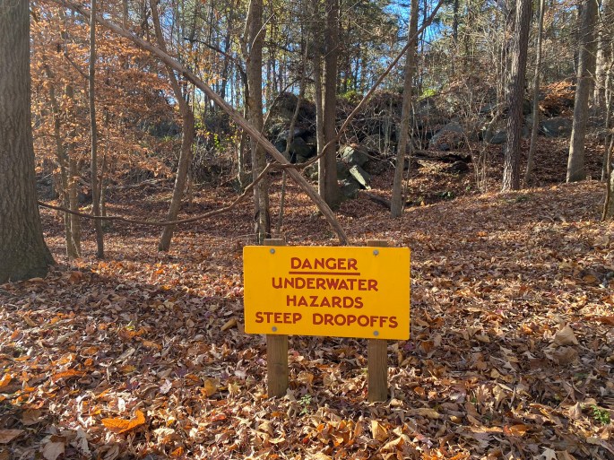 The Eno Quarry was mined in the 1960s to help pave Interstate 85 and was filled with water before being abandoned. It’s a popular swimming spot in the summer, despite all the warning signs.